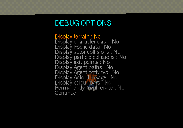 - Allow debug jump: Yes/No (setting it to yes gives the player a high jump when pressing L2)