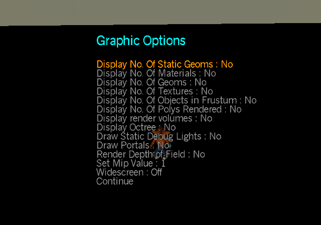 - Display No. Of Polys Rendered: Yes / No - Display counters for the number of object polygons and a timer