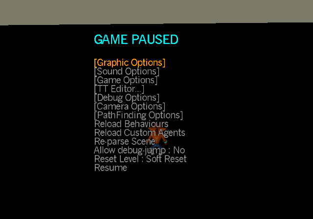 - Reload Behaviours (hot-reloads all scripts that are in the Import/LevelAgents.axp file and resets level)
